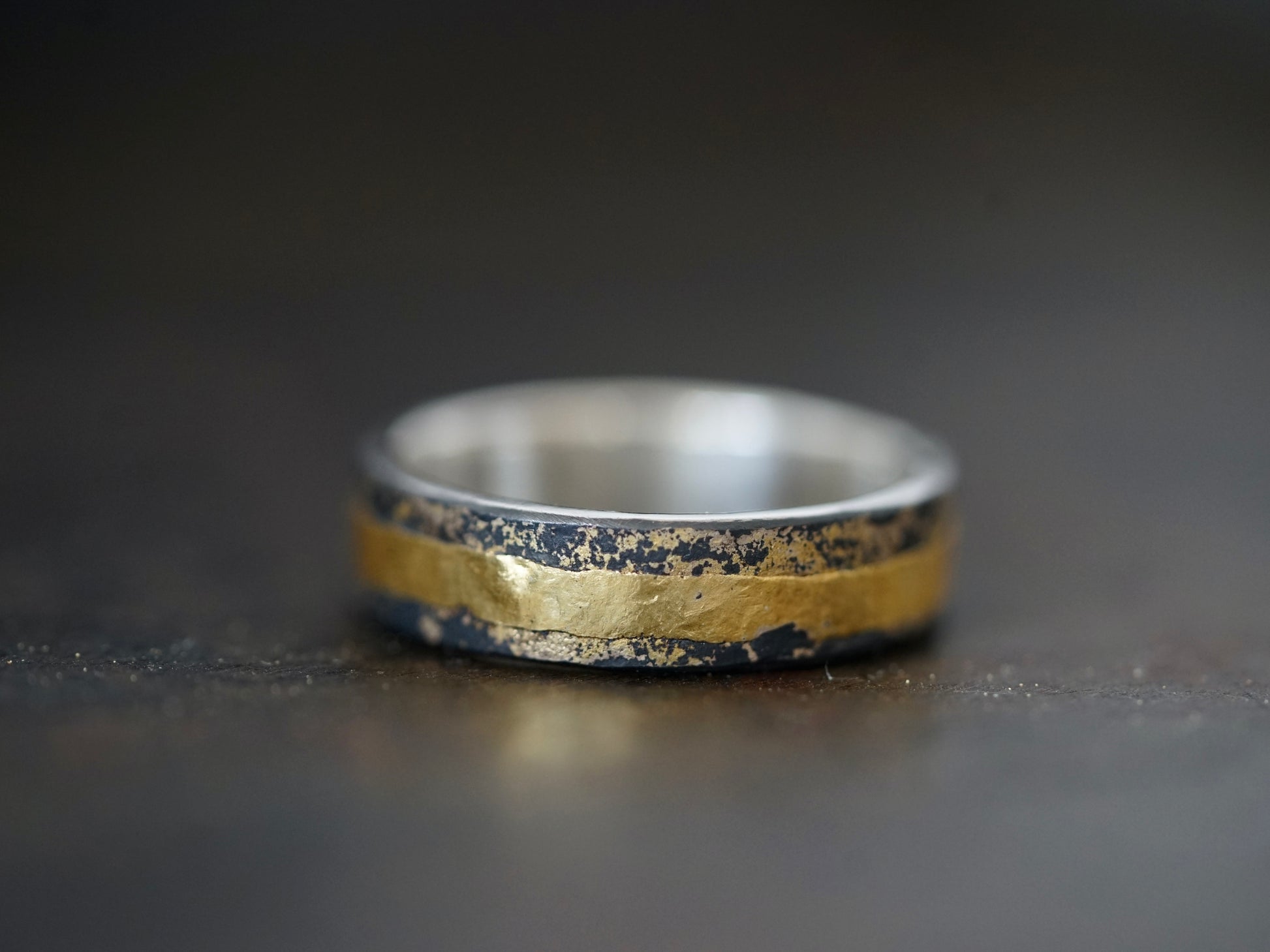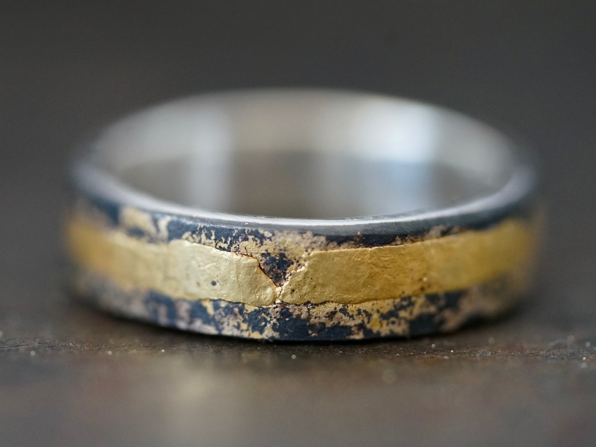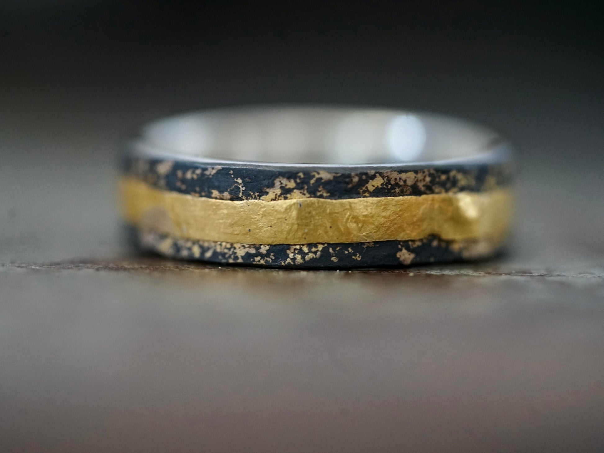 Custom order for Alicja: Midas ring with 22k gold dust and an overlayed, distressed 18K gold band. Size 9.