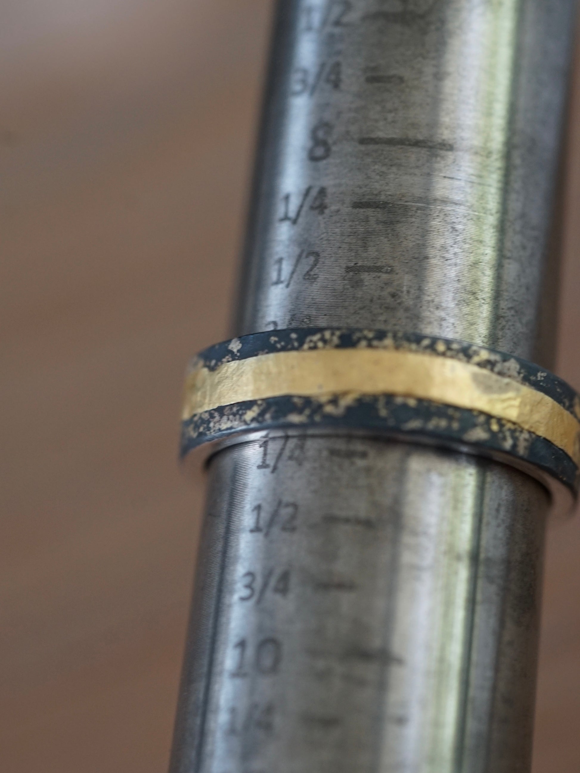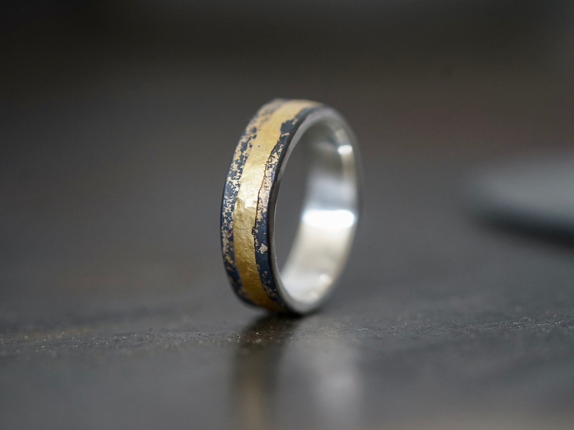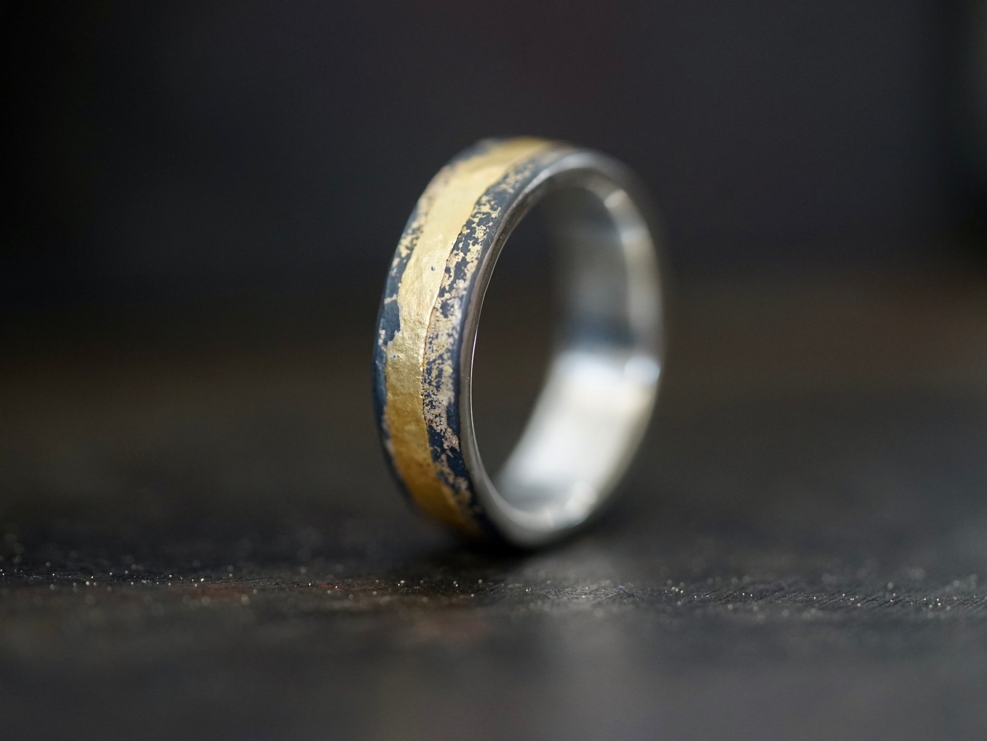Custom order for Alicja: Midas ring with 22k gold dust and an overlayed, distressed 18K gold band. Size 9.