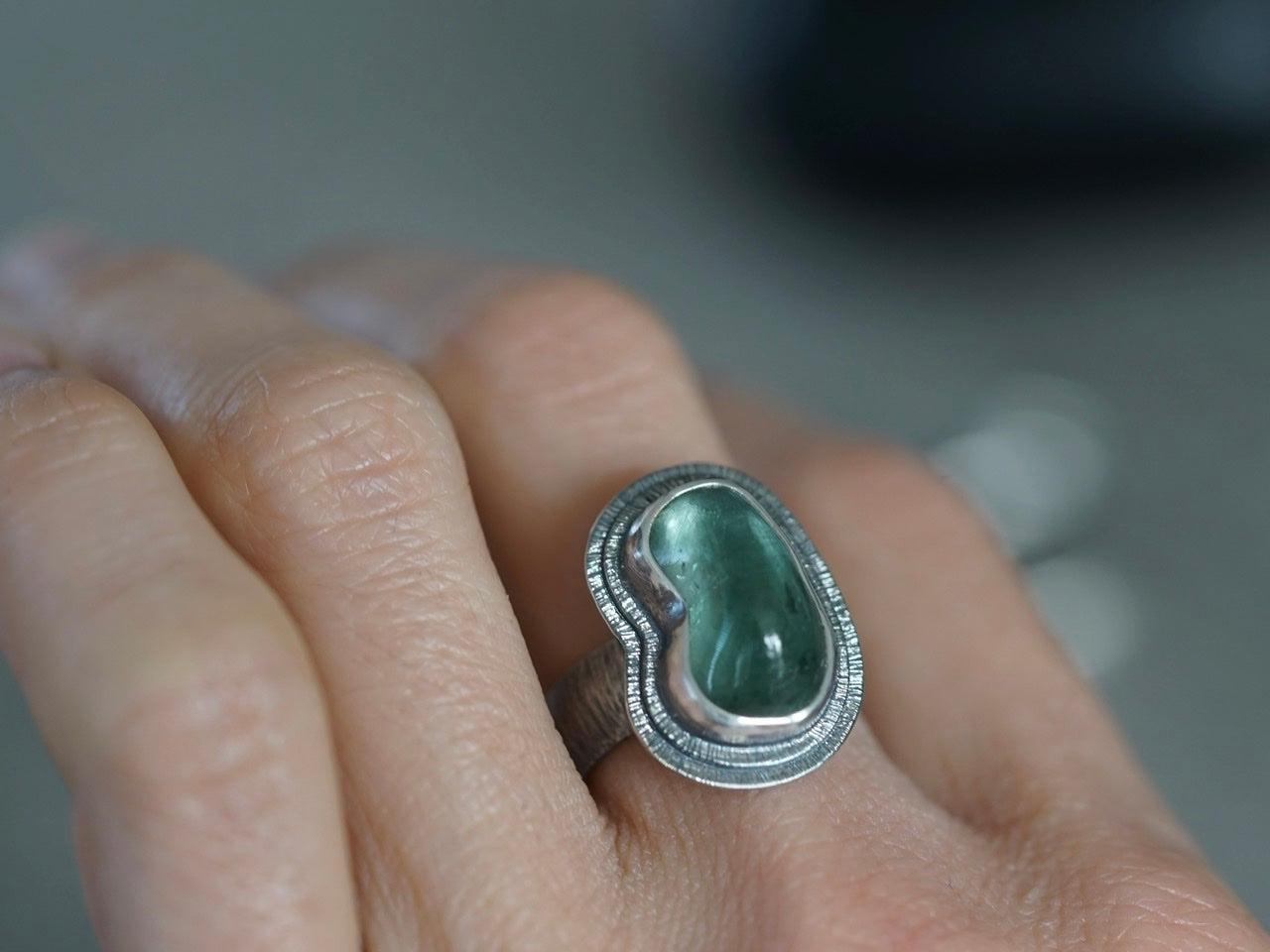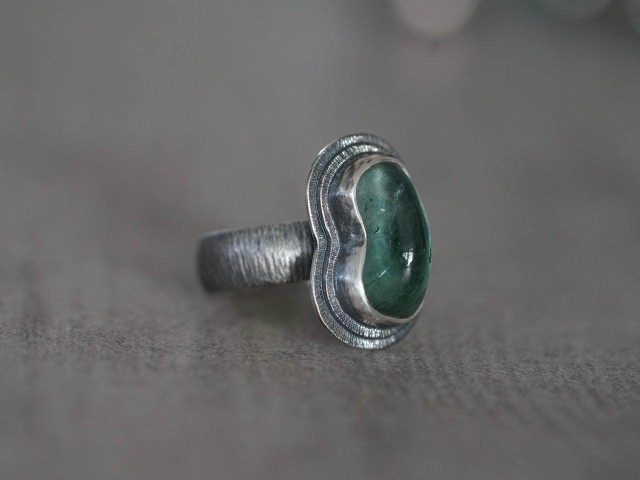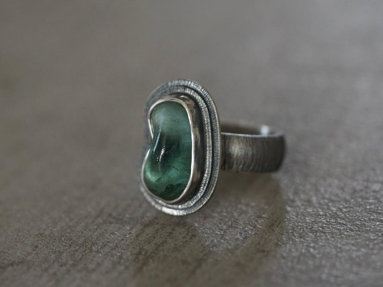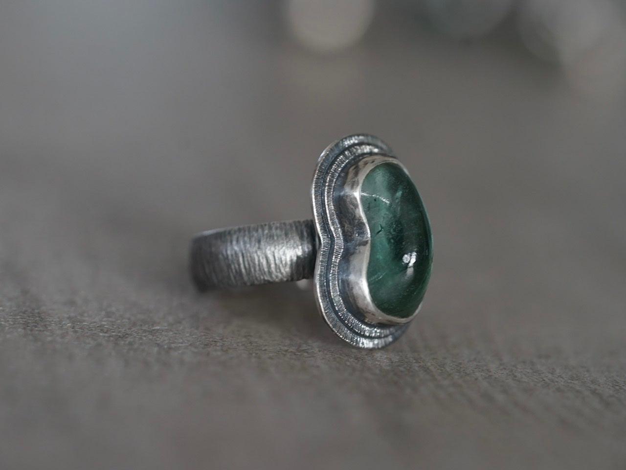 Carved teal tourmaline ring, size 7.25