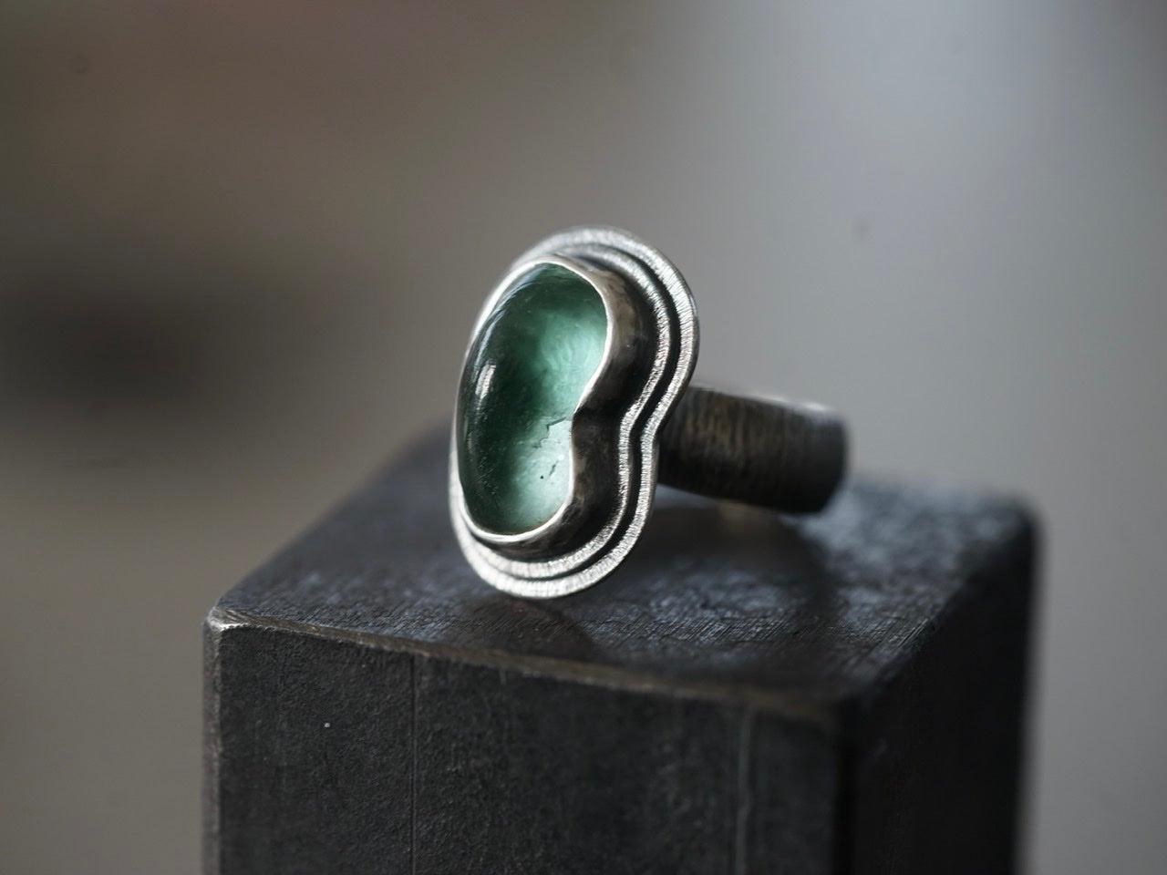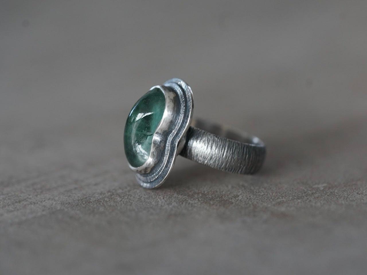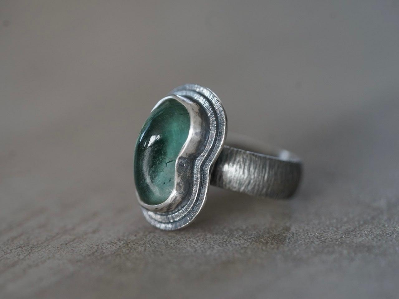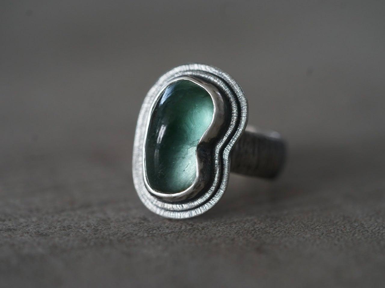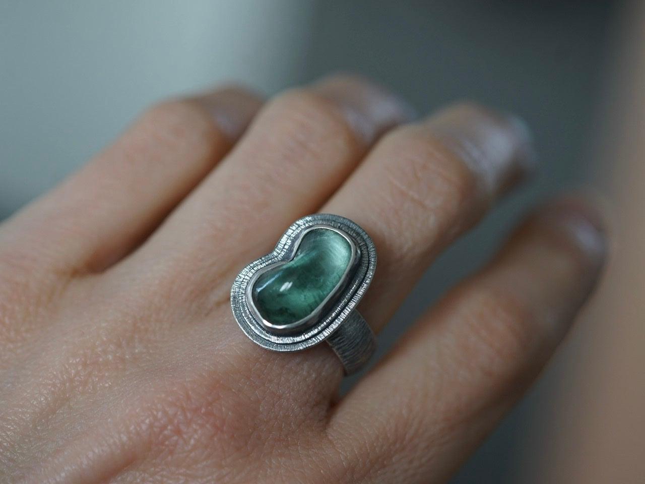 Carved teal tourmaline ring, size 7.25