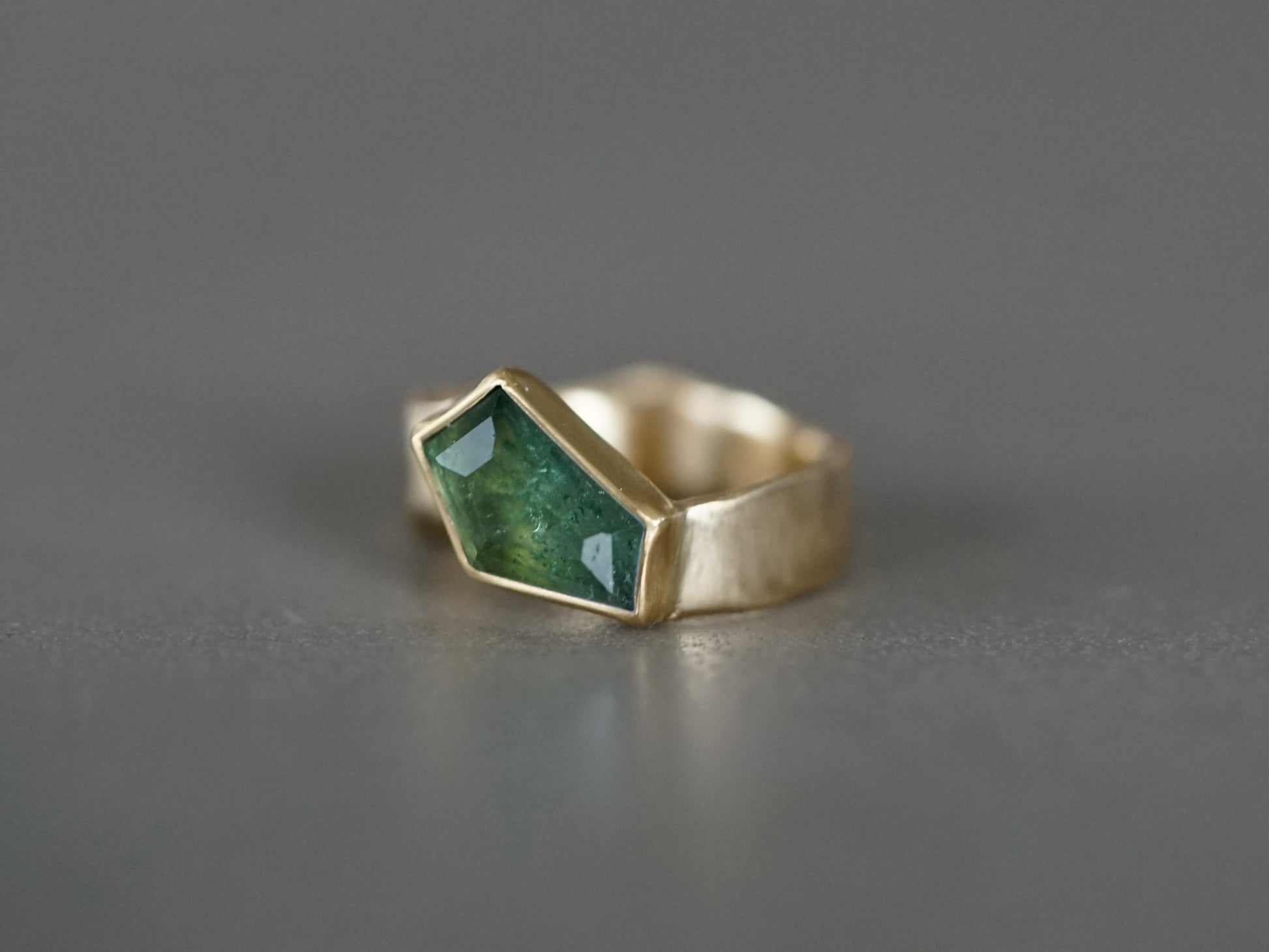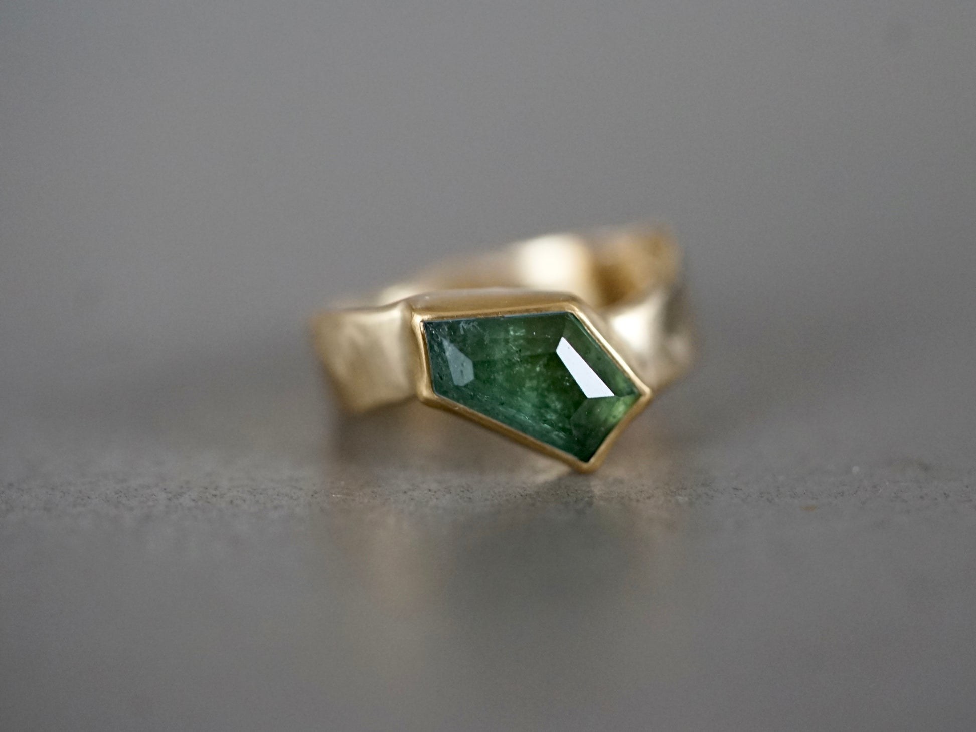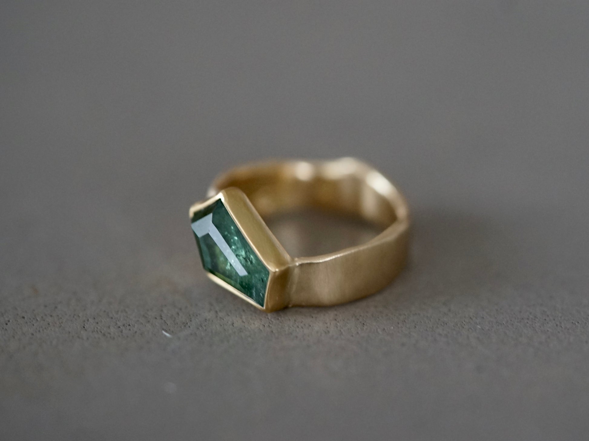 It was an honour and great pleasure to create this bespoke, one of a kind, 18K gold ring for Catia. It is a US size 5.75 and features a green tourmaline as focal element.