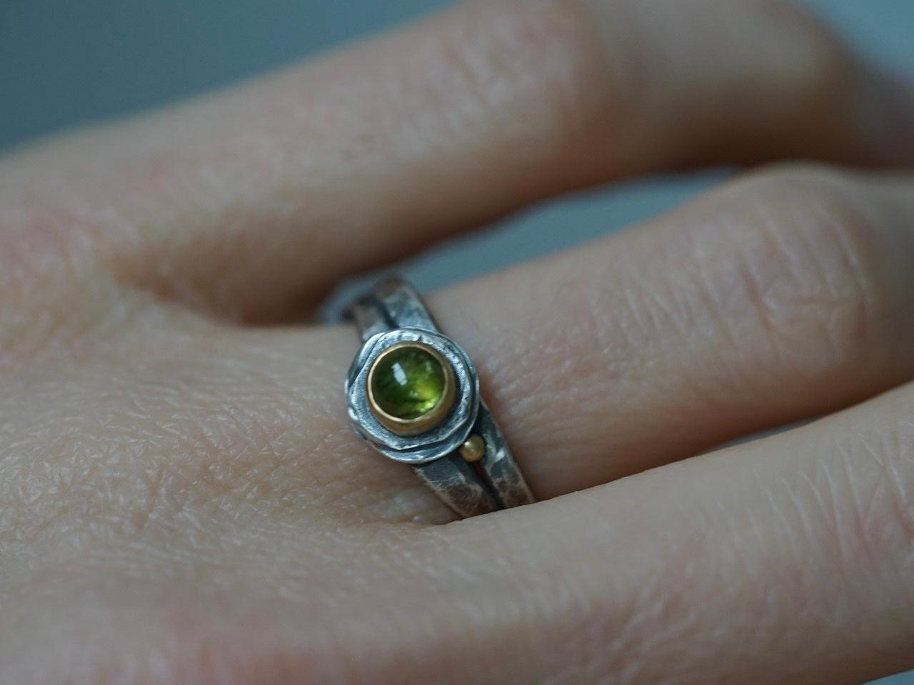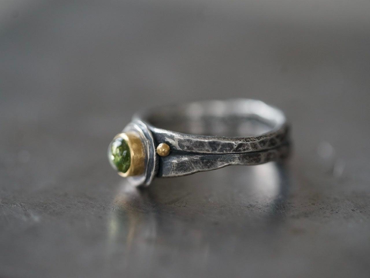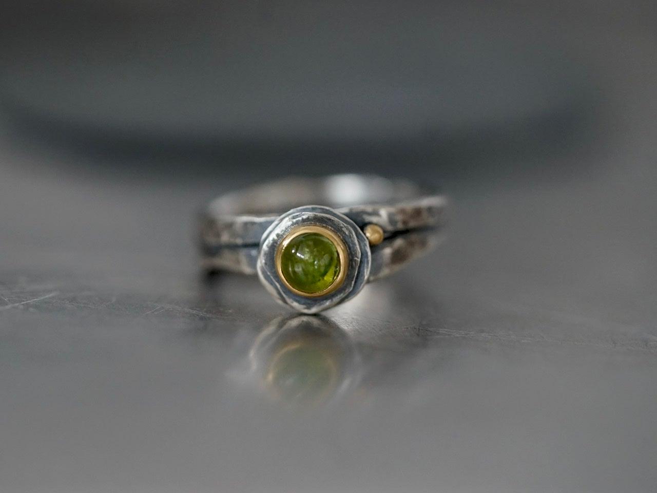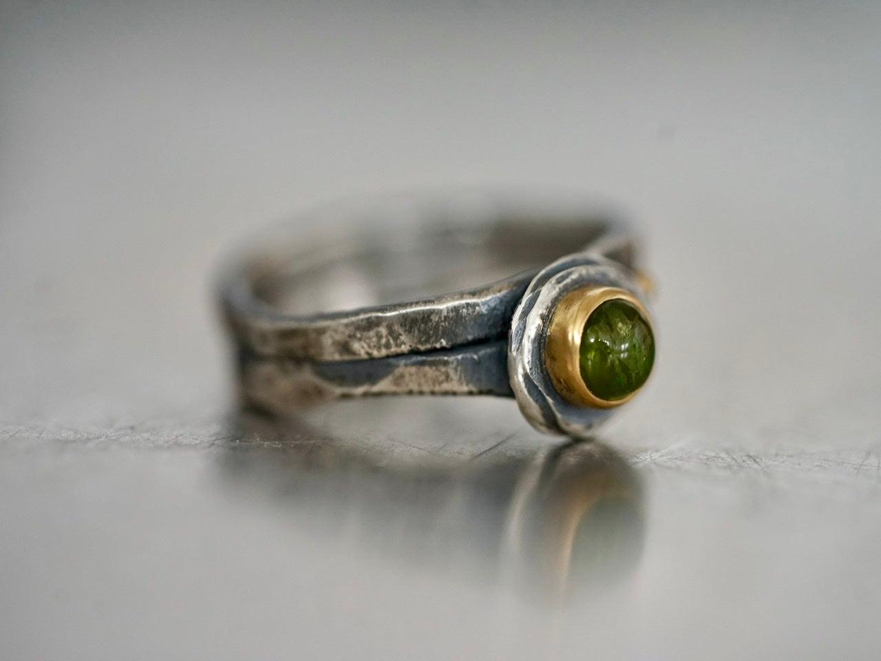 Stone: 5 x 5mm green tourmaline set in 22k gold
