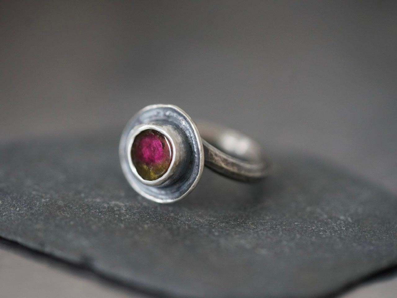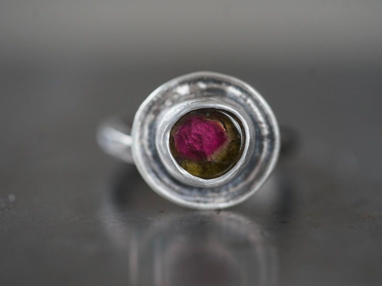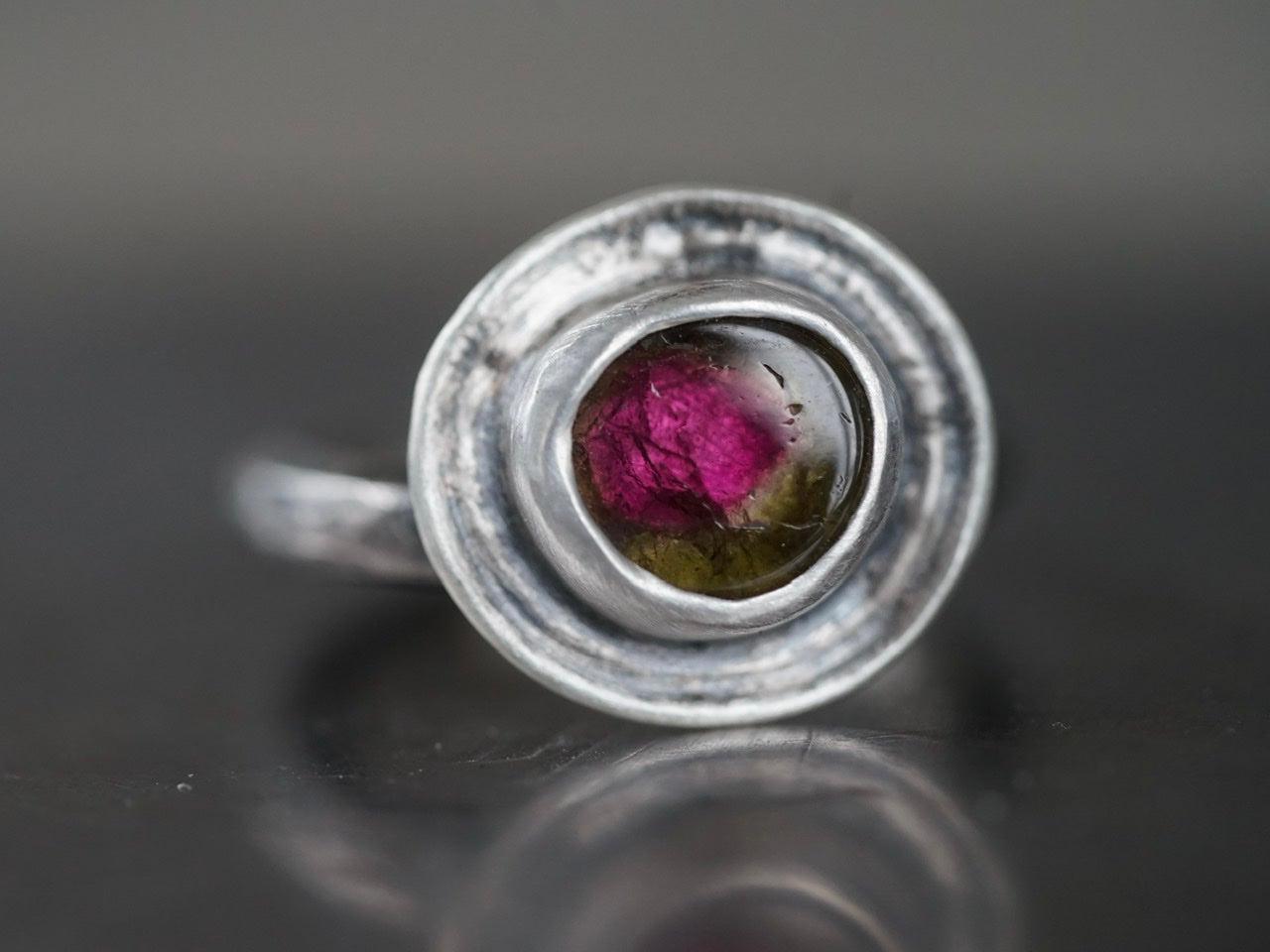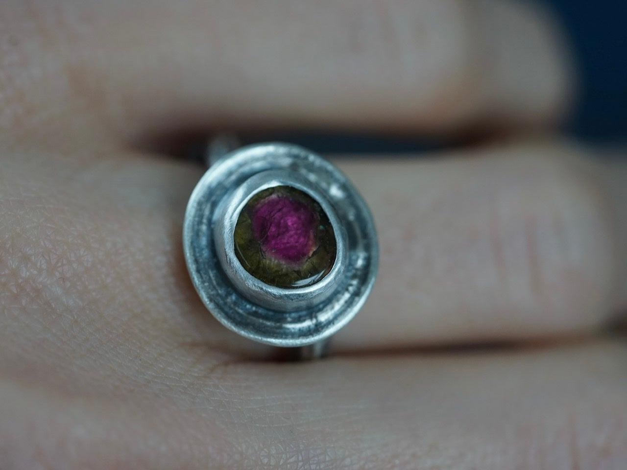 Stone: 10 x9 mm, tourmaline freeform nugget, set in fine silver