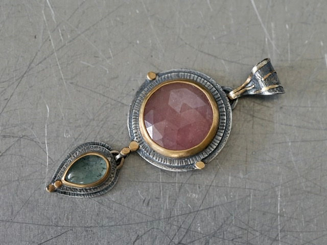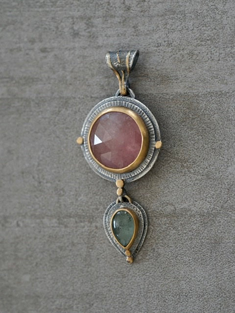 Custom made Sapphire and Aquamarine pendant with gold accents