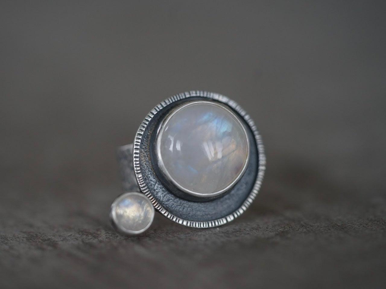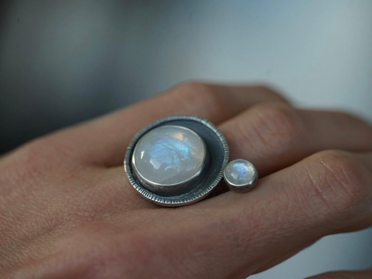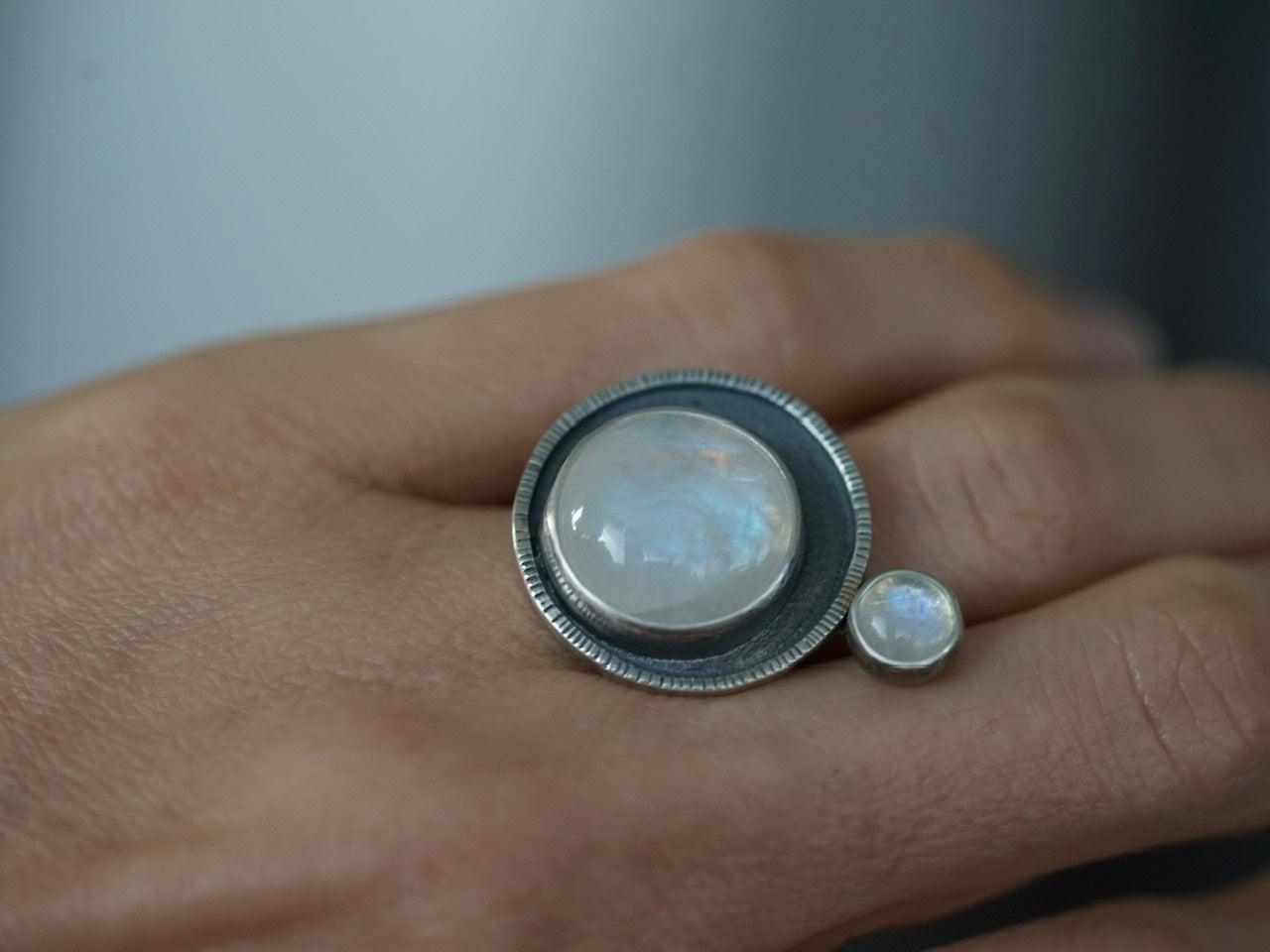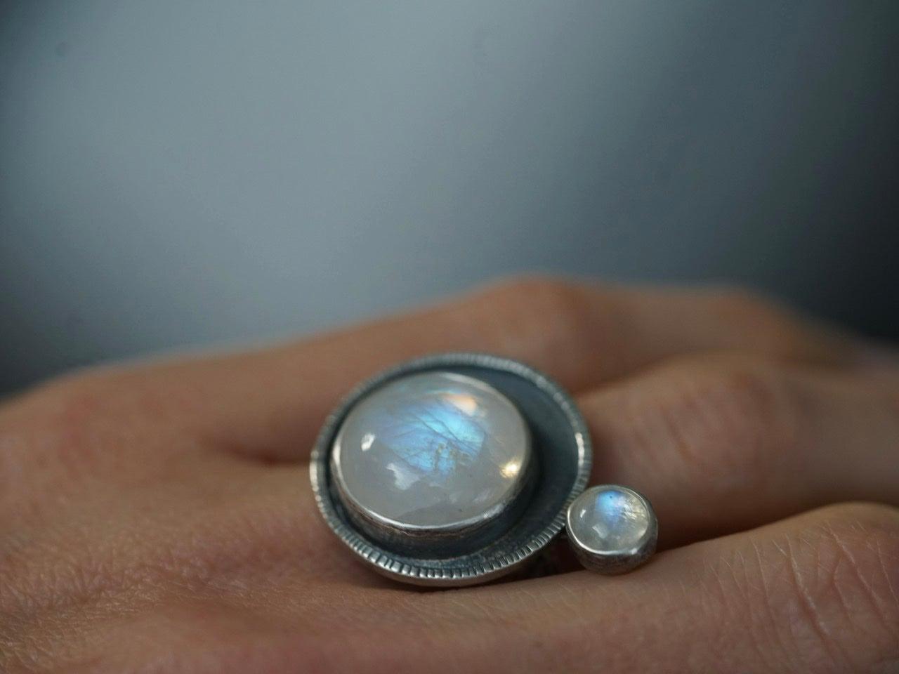 Moonstone satellite ring, size 7