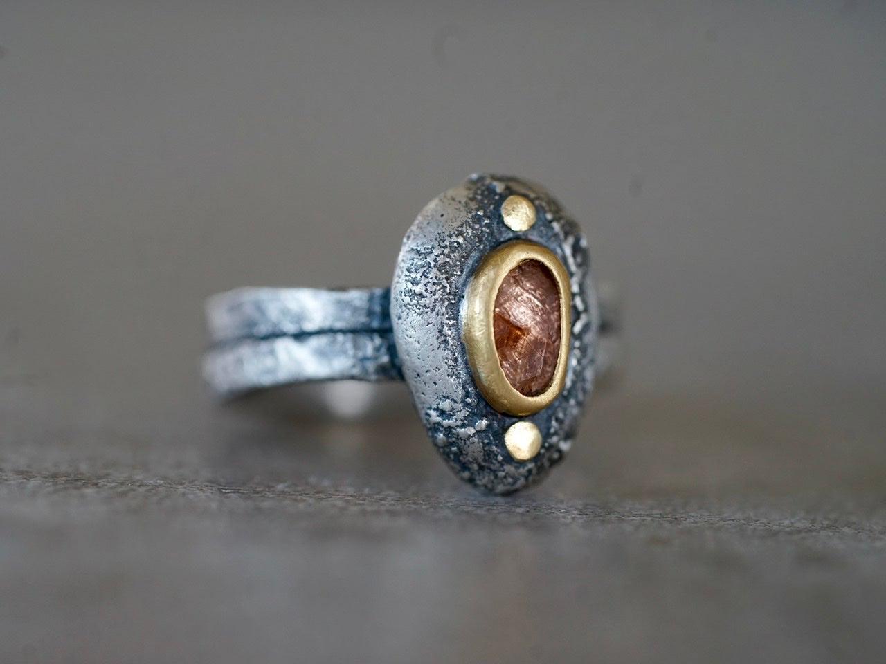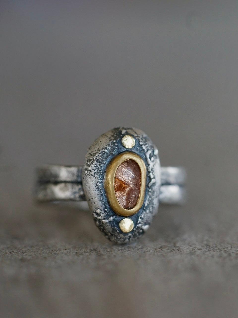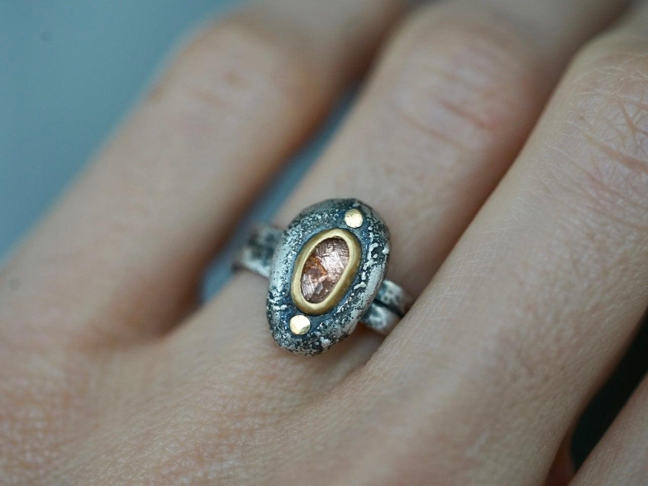 This unique silver pebble and spinel in gold ring was handmade by me in my studio.