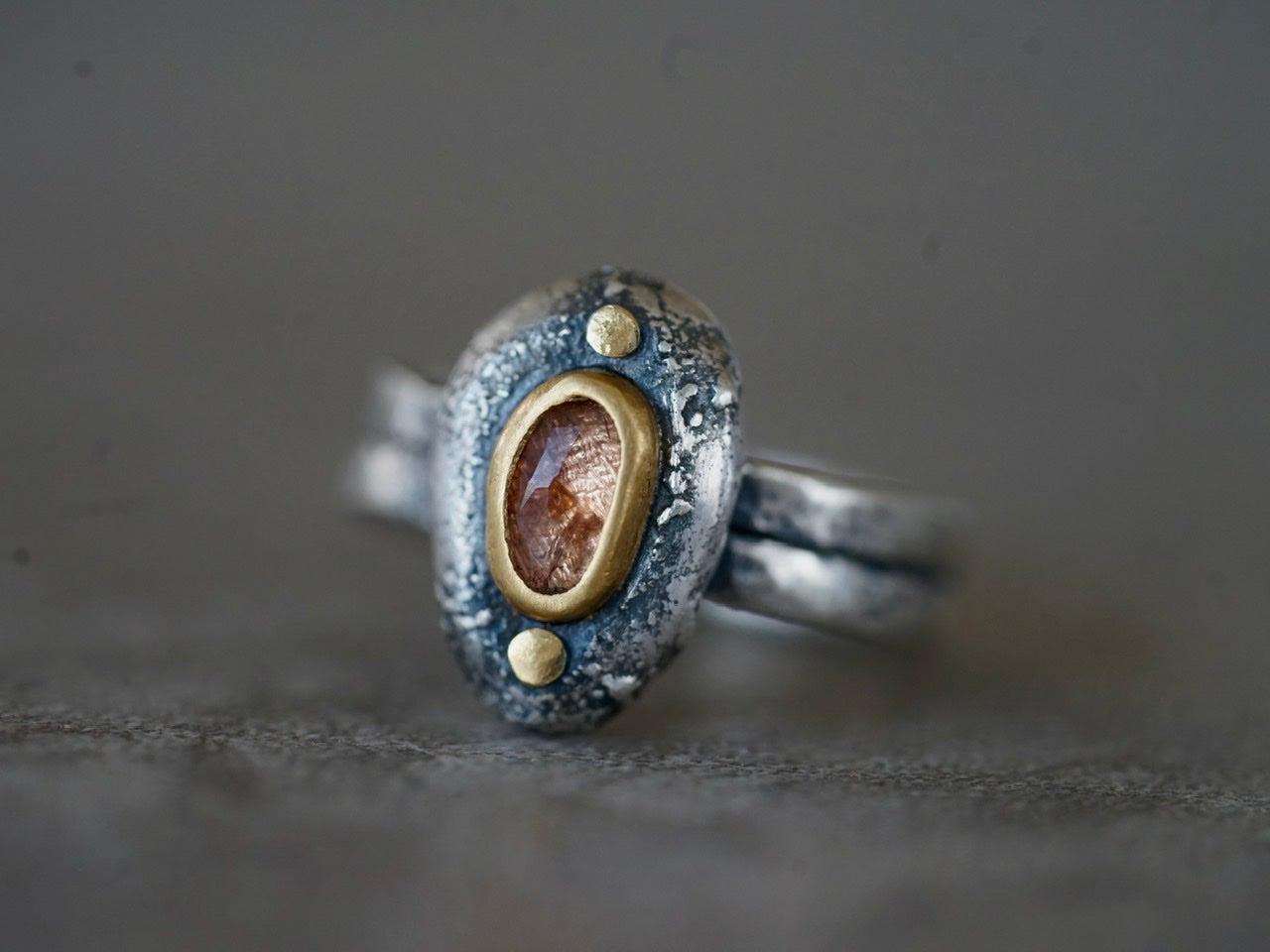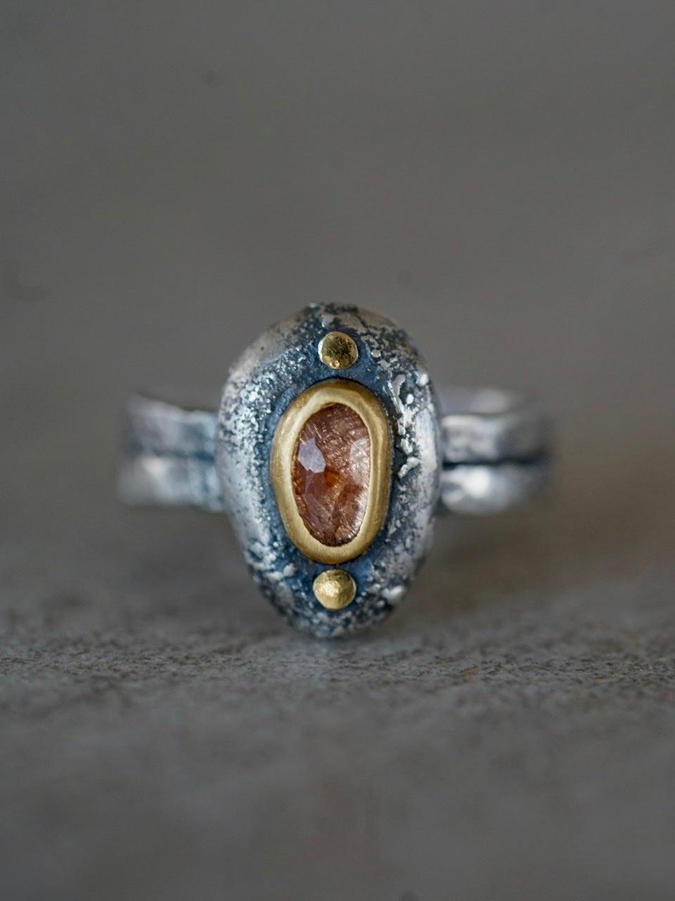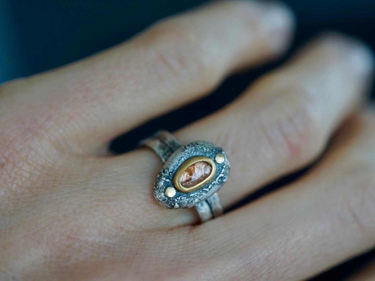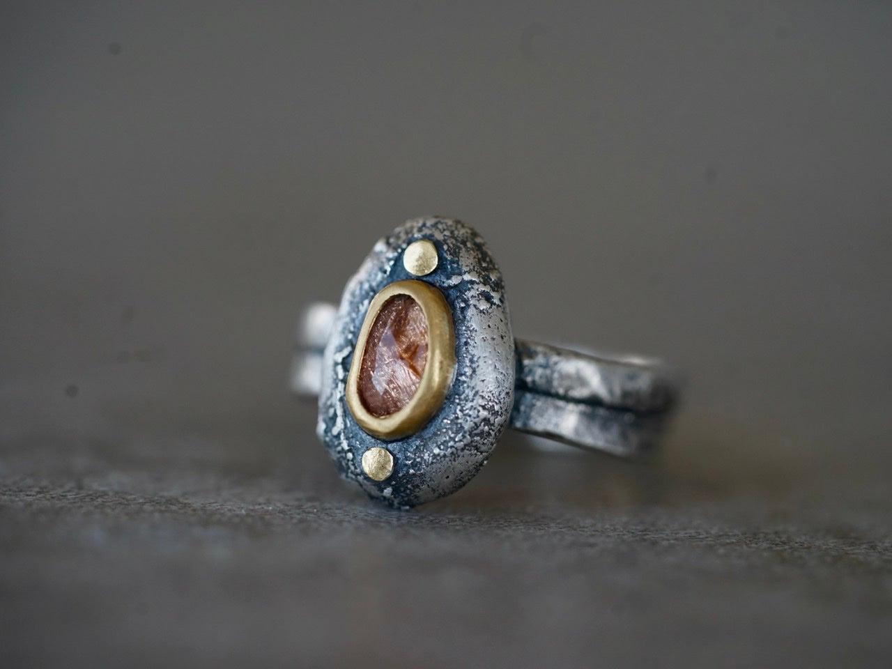 This unique silver pebble and spinel in gold ring was handmade by me in my studio.
